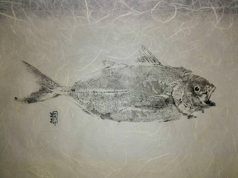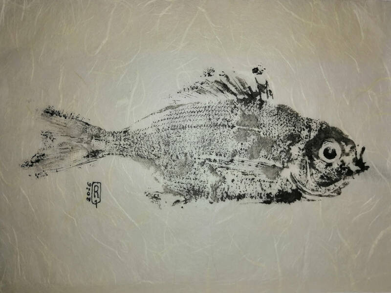 Ho iniziato a provare la tecnica del GYOTAKU, dopo avere scoperto i lavori splendidi di Elena Di Capita https://gyotakulevante.com/ che mi hanno sorpreso e incuriosito.